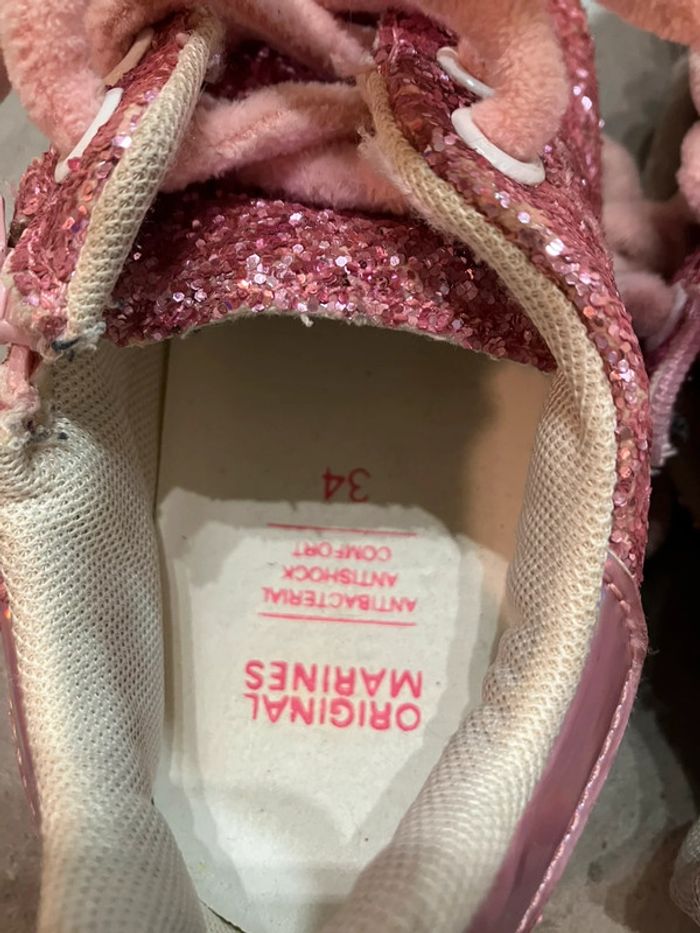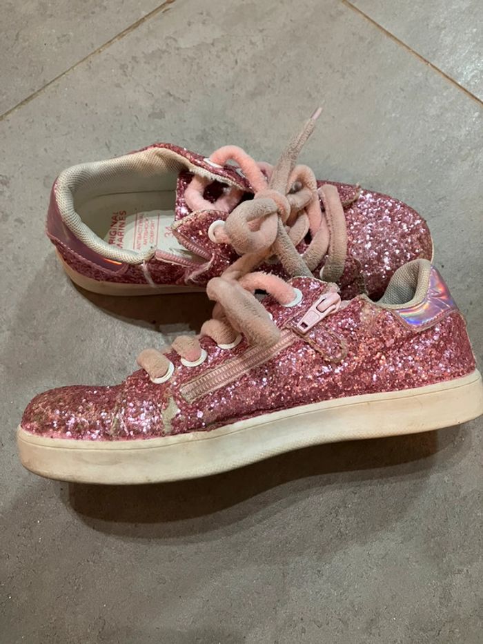 Baskets roses à grosses paillettes et lacets fantaisie, 33 Certaines paillettes sont manquantes, mais cela se voit assez peu. Relativement bon état. N’hésitez pas à regarder mes autres annonces et à faire des lots pour profiter de réduction. Vous pouvez retrouver d’autres chaussures en cliquant ici : #angebourgeoisfillechaussures