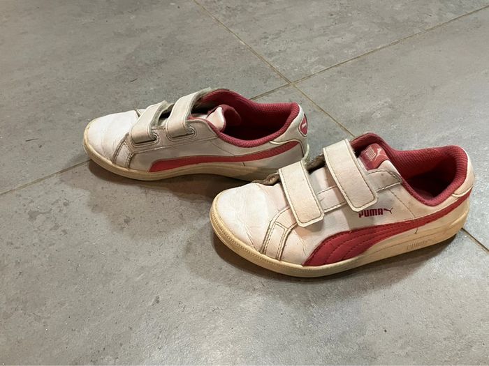 Puma blanches et roses 33 A scratch Relativement bon état N’hésitez pas à regarder mon dressing, j’ai aussi d’autres chaussures cliquez sur le lien pour les voir : #angebourgeoisfillechaussures