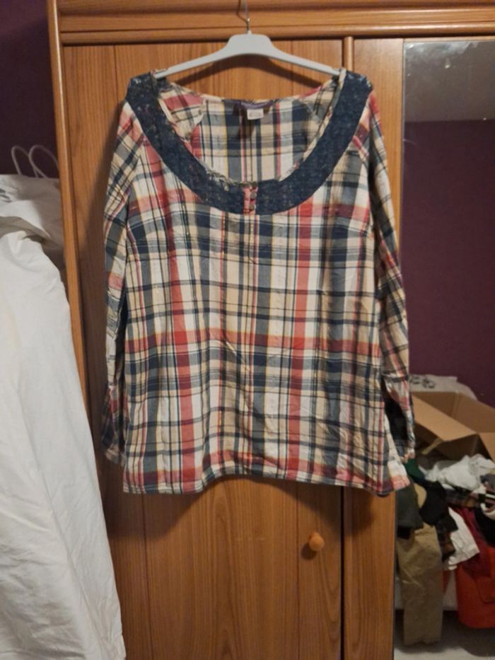 Rayé bleu blanc rose doré dentelle à l encolure Très peu portée