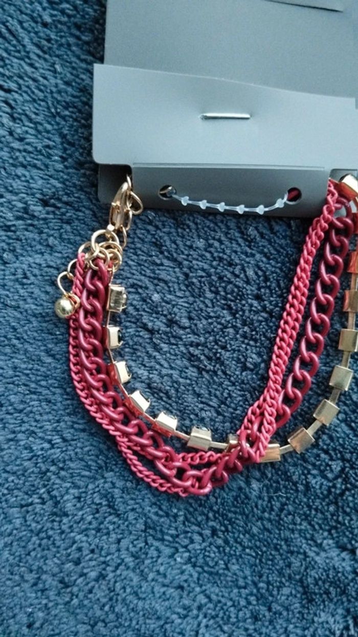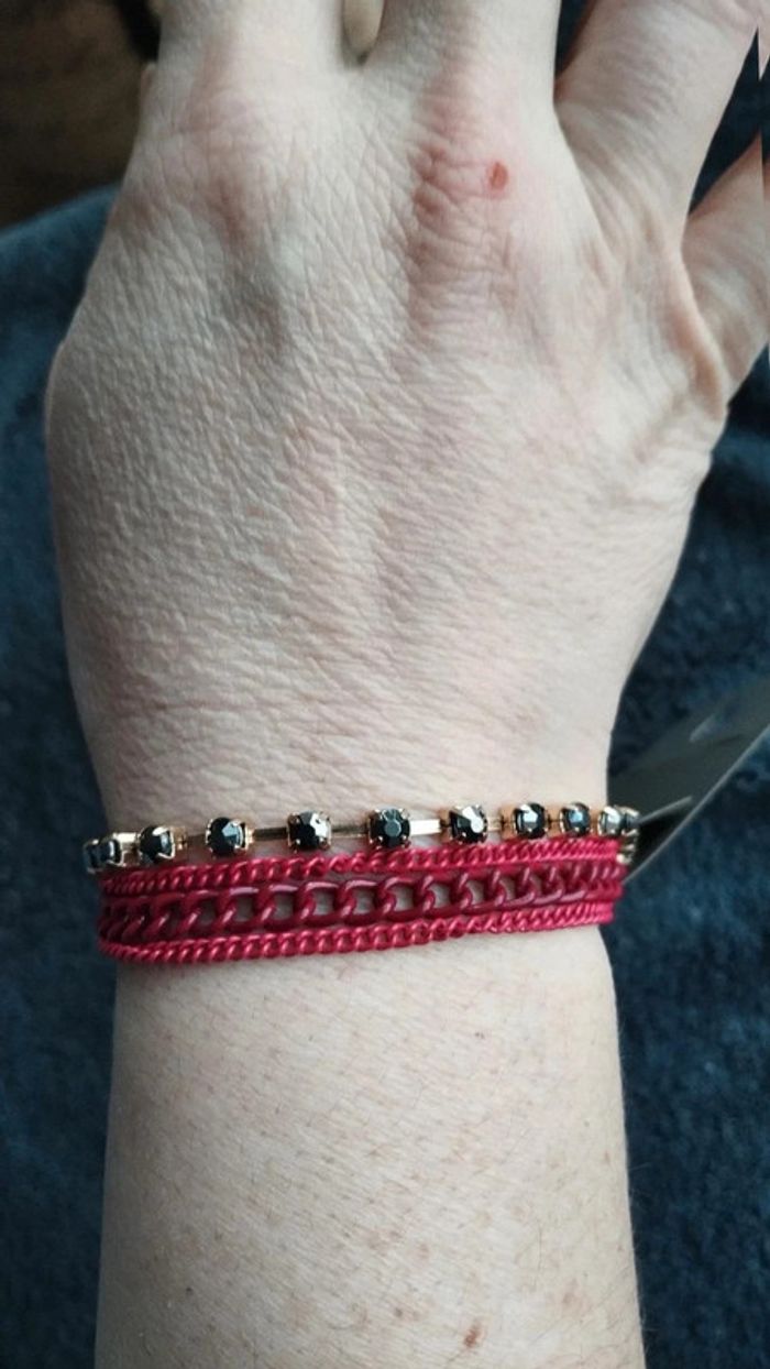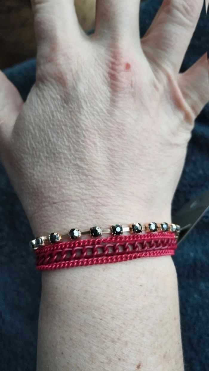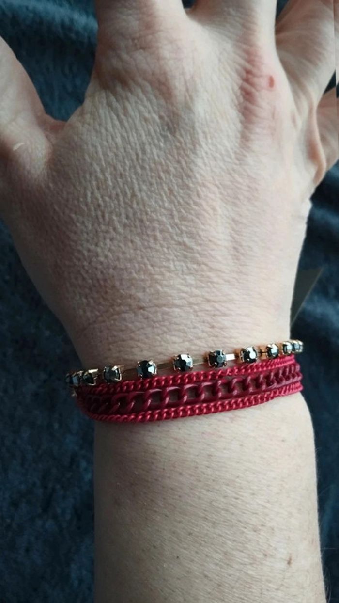 Bracelet multi rangs rouge et doré chaînette - photo numéro 3