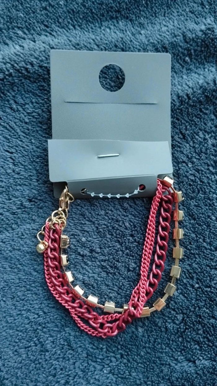 Bracelet multi rangs rouge et doré chaînette - photo numéro 4