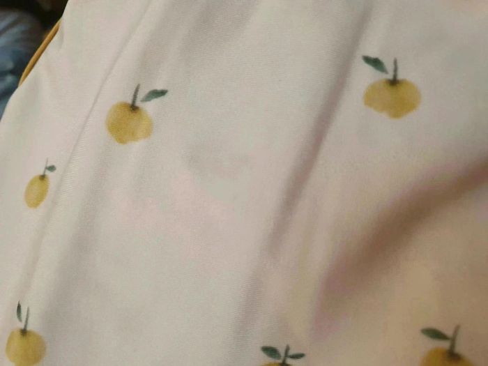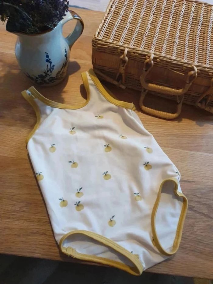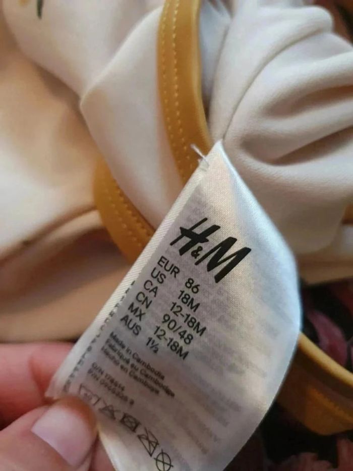 Sublime maillot de bain h&m beige , moutarde , motifs pêche ou orange ! 18 mois. Micro tache voir photo mais très peu visible. #dressingelphye18mois