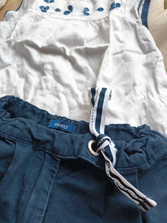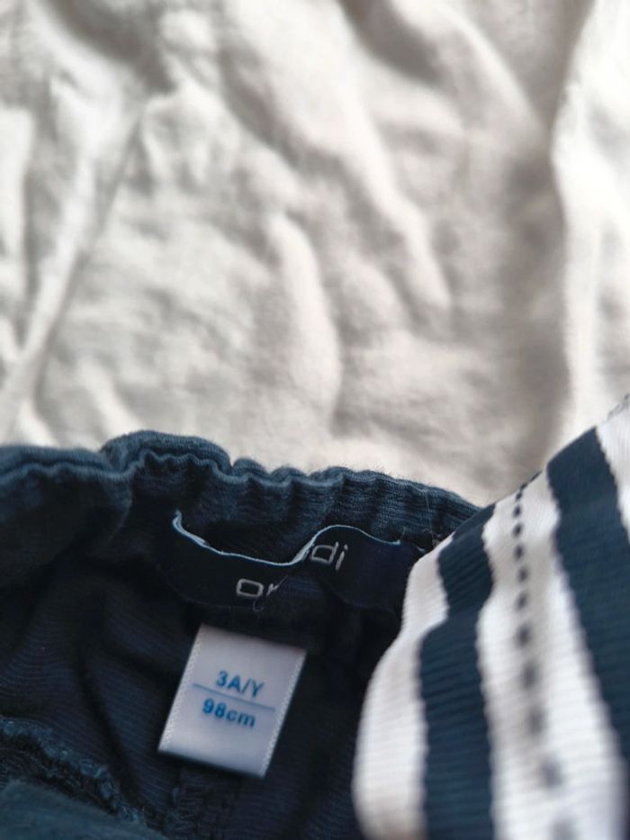 Ensemble Obaibi 3 ans . Short bleu marine et blouse blanche et bleu . #dressingelphye3ans