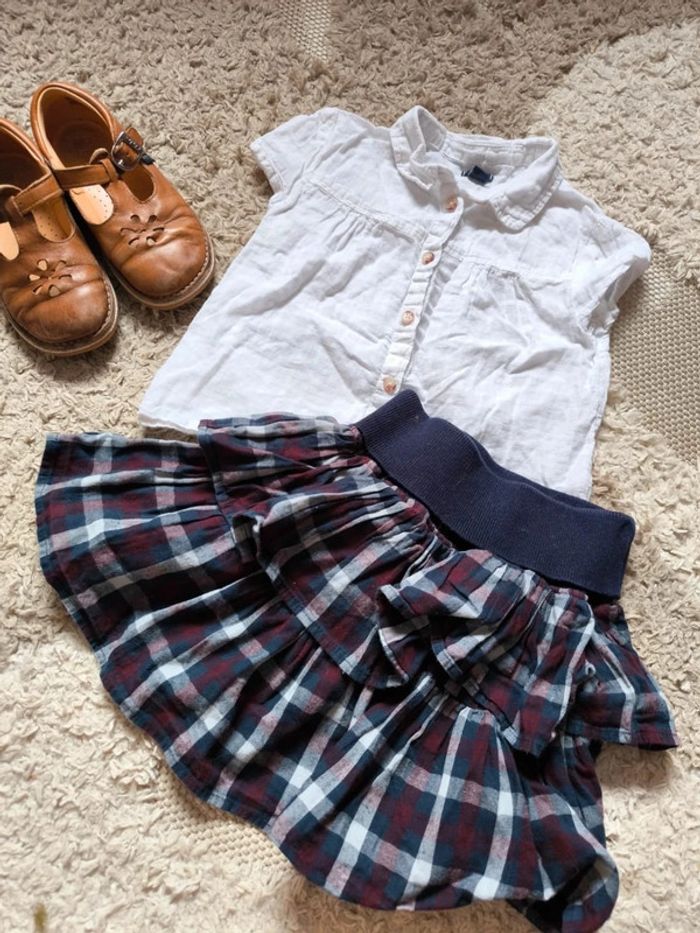 Ensemble 6 ans chemisier blanc Kiabi et jupe a carreaux monoprix kids #dressingelphye6ans