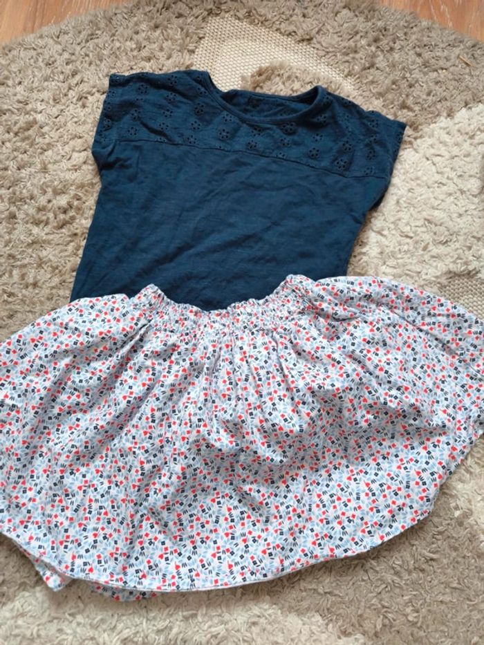 Ensemble 6 ans jupe Okaïdi et t-shirt bleu marine . #dressingelphye6ans