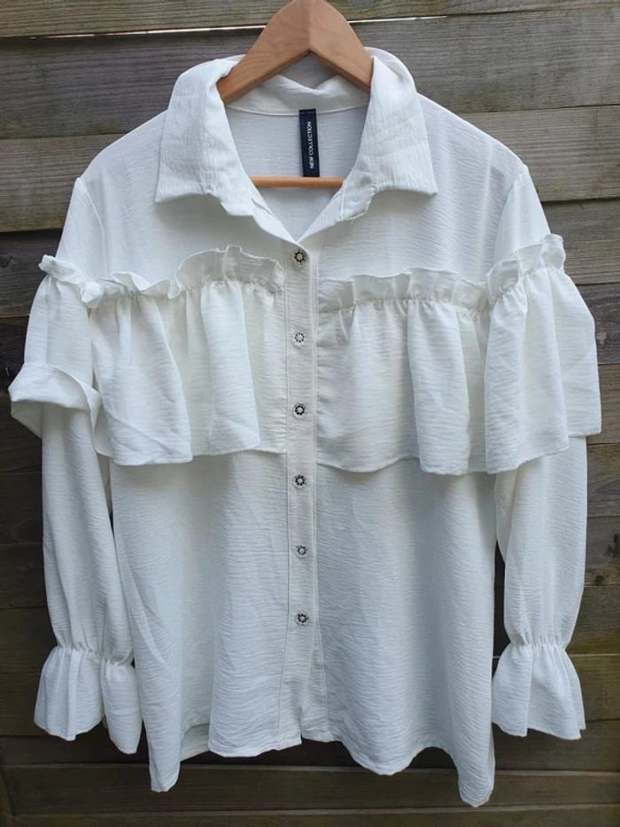 Chemisier large blanc à volant et jolis boutons taille 38. #dressingelphye38