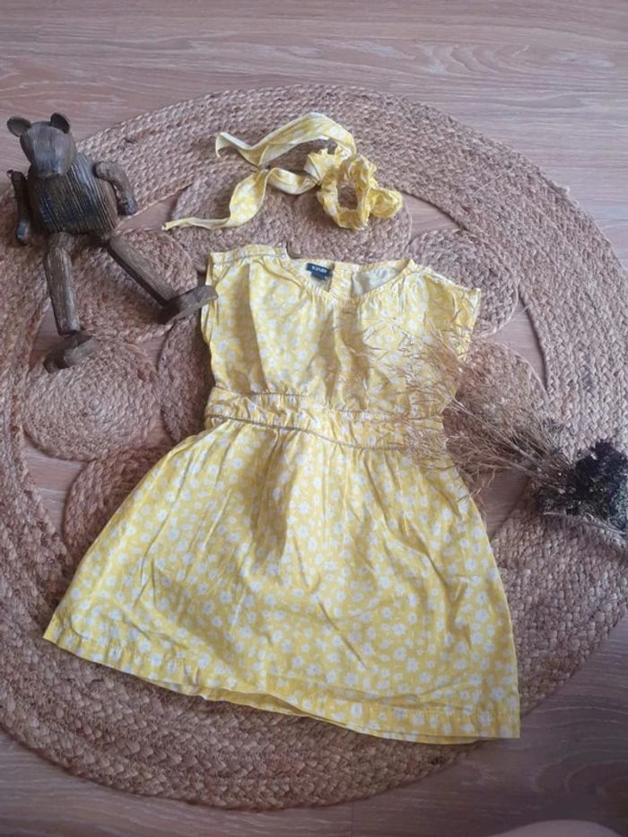 Jolie robe jaune été indiqué 3 mais taille 2 ans avec son chouchou. #dressingelphye24mois
