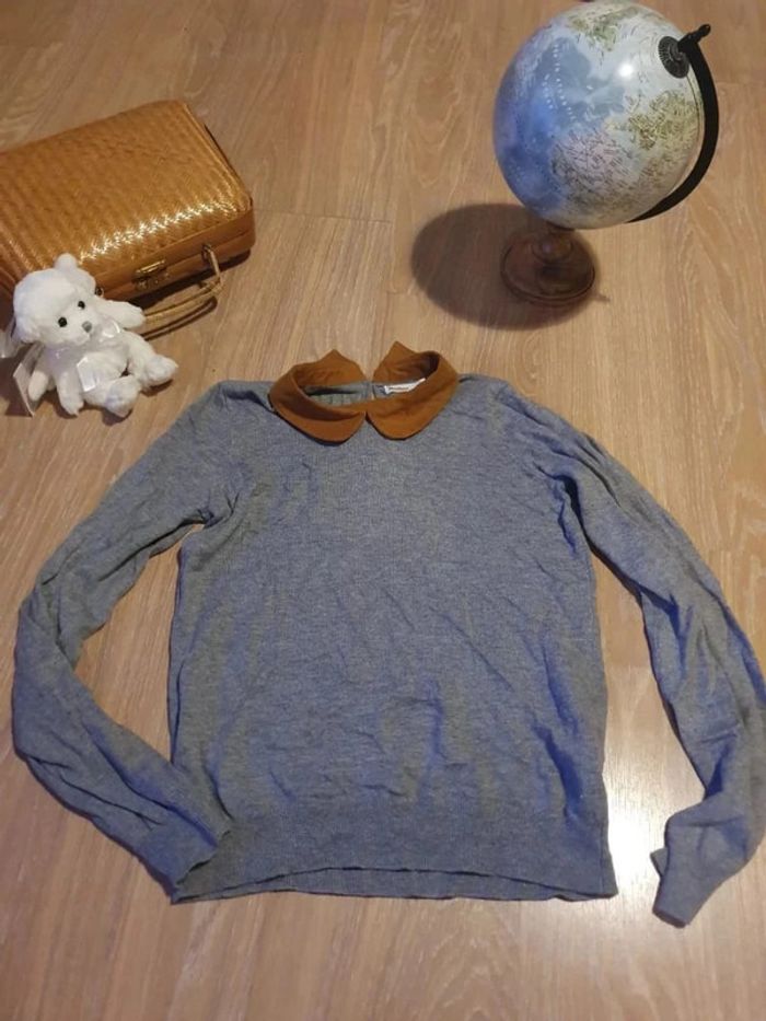 Joli pull gris col Claudine en suédine camel taille S #dressingelphye36