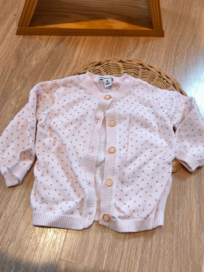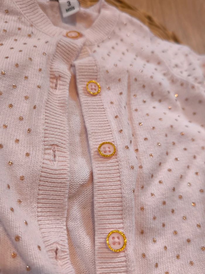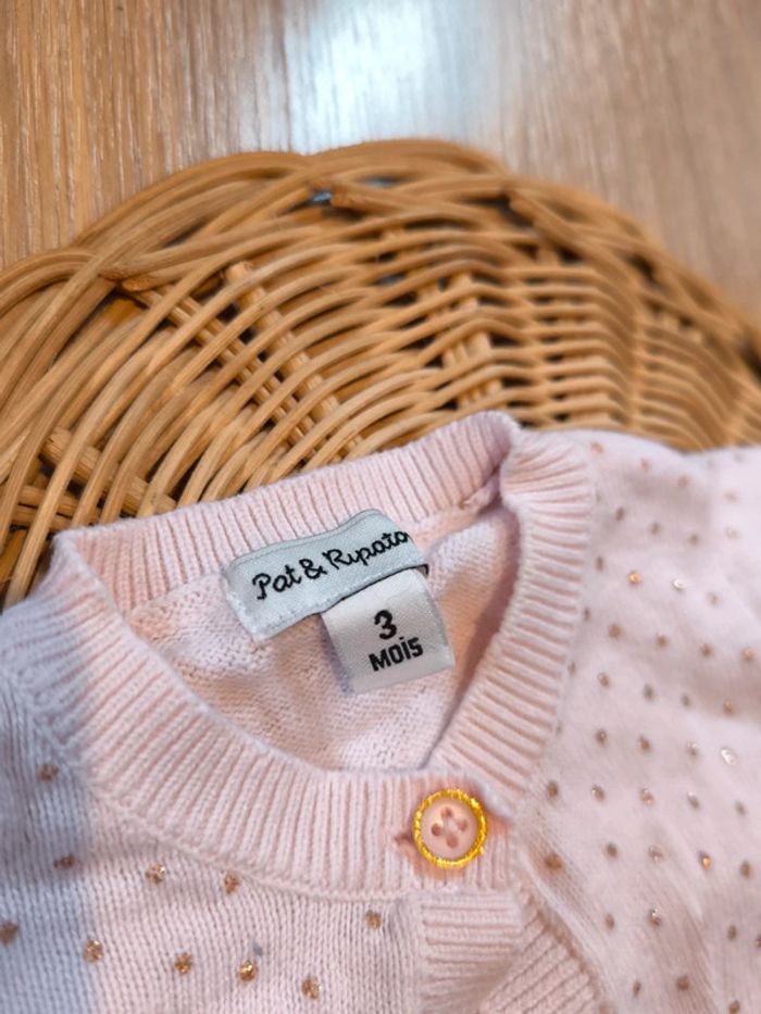 Gilet 3 mois rose pâle points dorés pat & ripaton #dressingelphye3mois
