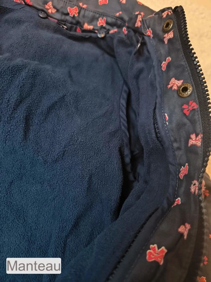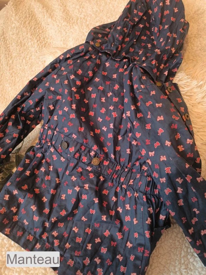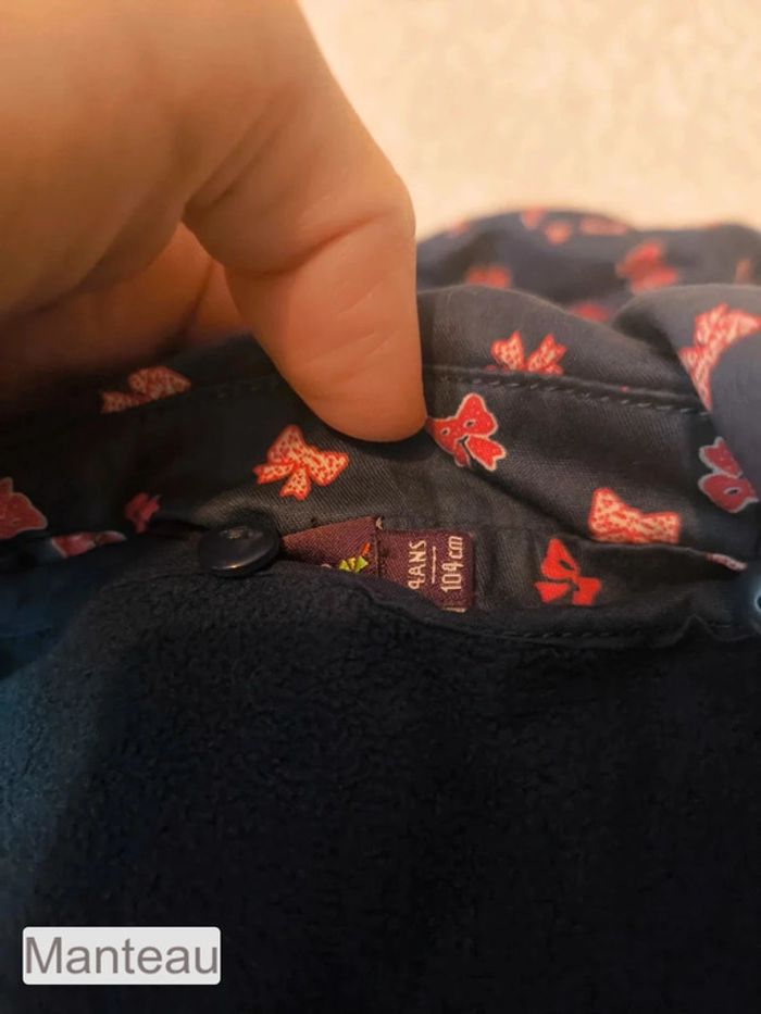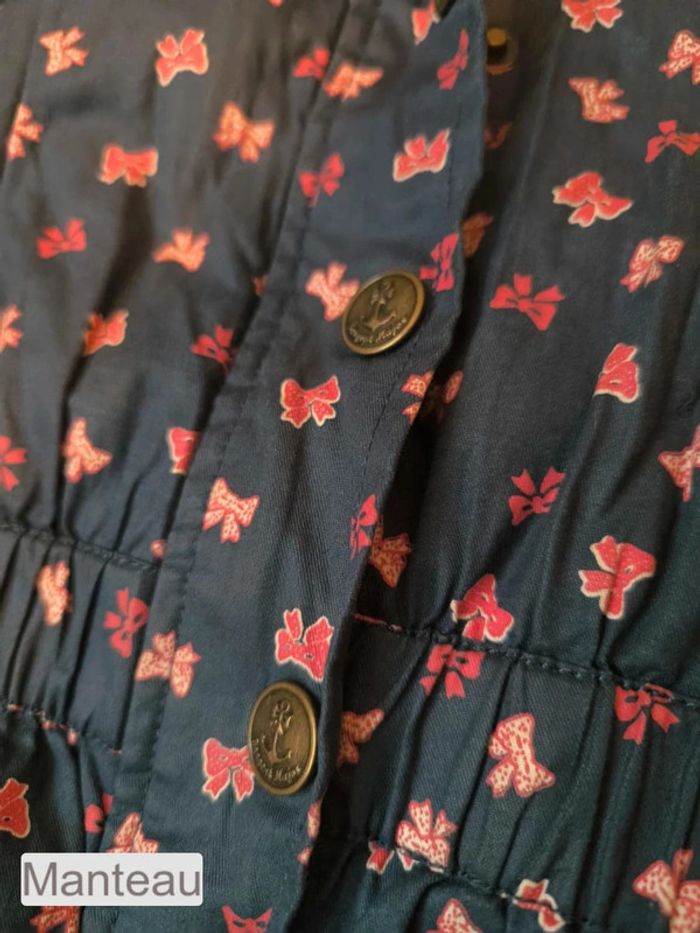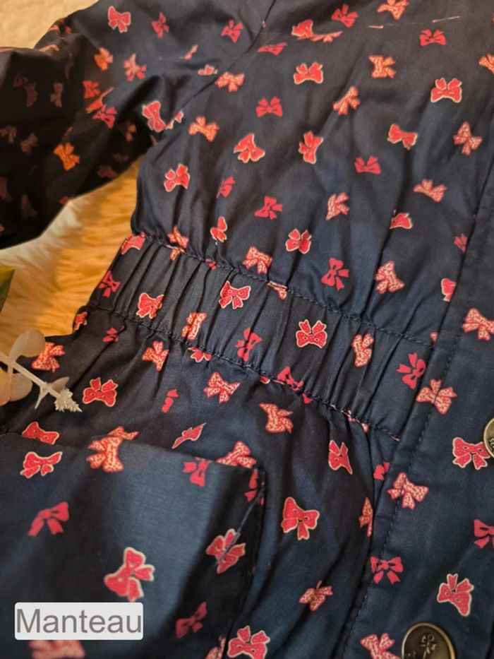 Manteau sergent major idéal toutes saisons grâce à son polaire amovible. 4 ans . Bleu marine motifs petits noeuds rouge . #dressingelphye4ans