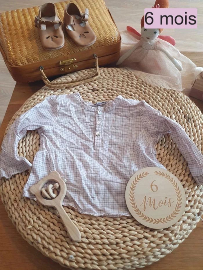 Chemisier à carreaux grain de blé rose pale et gris 6 mois #dressingelphye6mois