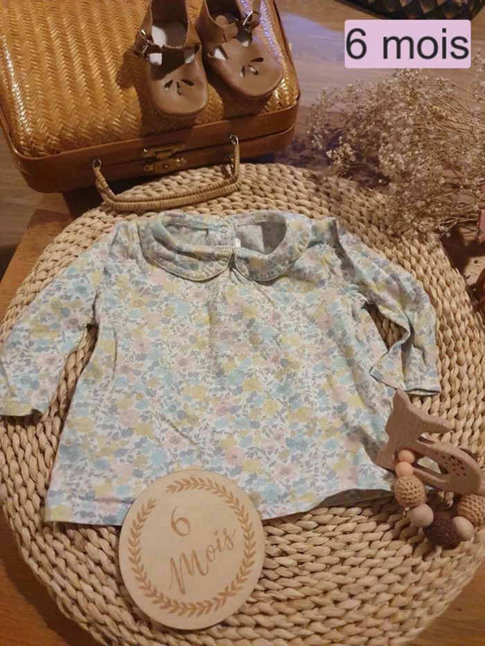 Jolie t-shirt fleurit tons pastels col Claudine 6 mois. #dressingelphye6mois