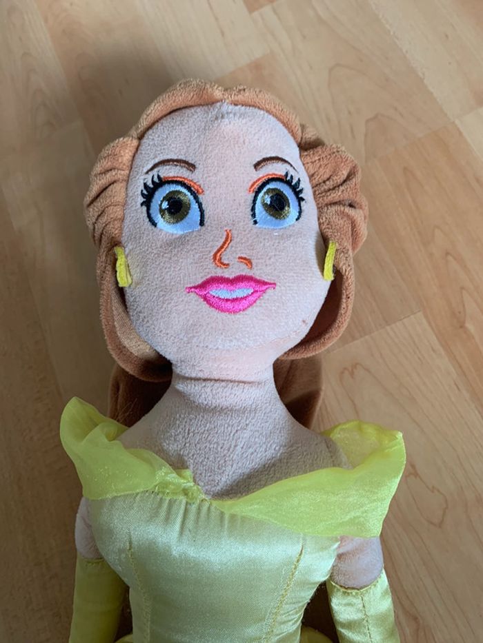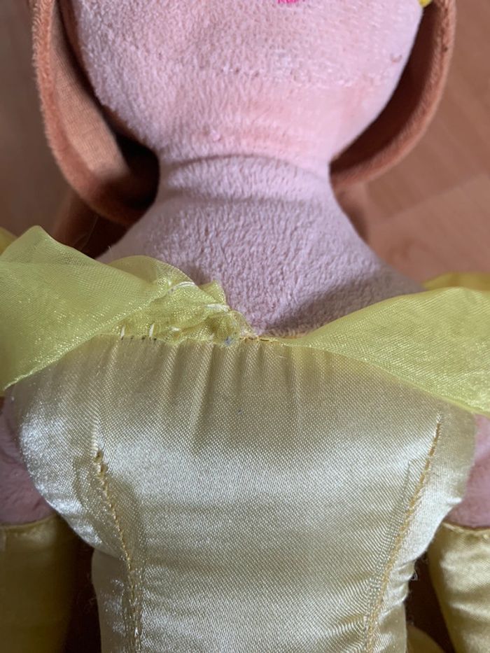 Poupée Disney belle A été recousue au niveau du tulle jaune