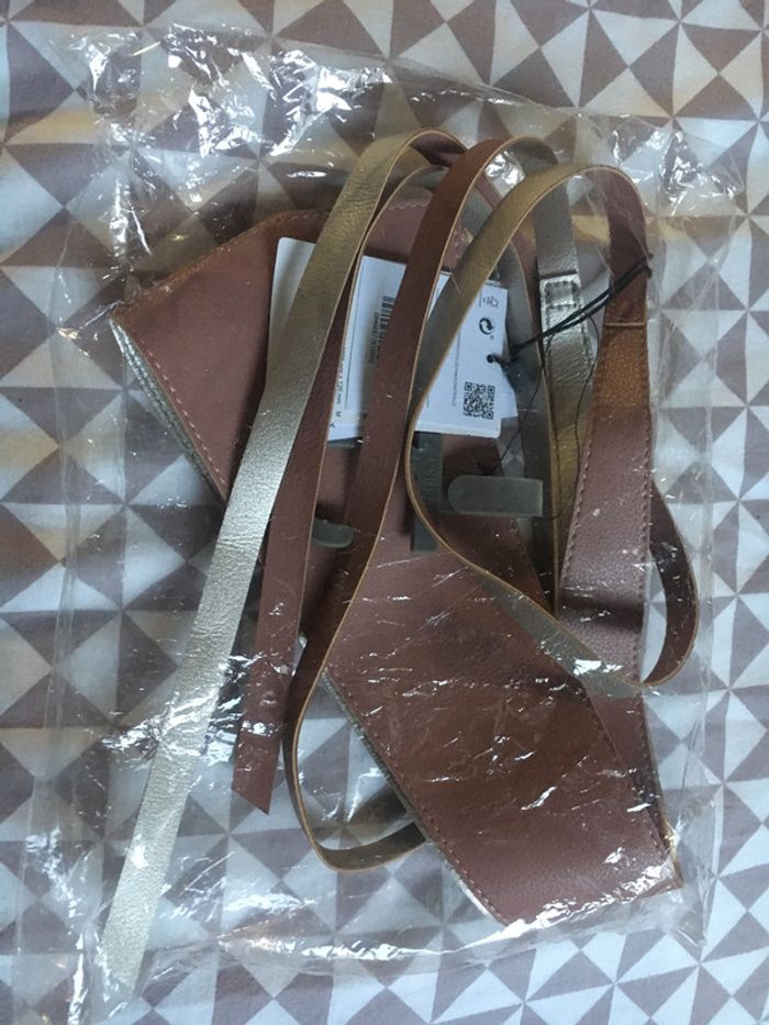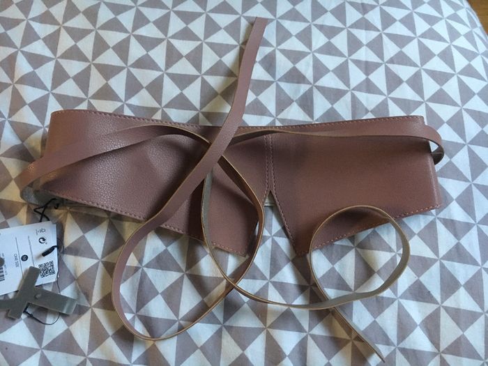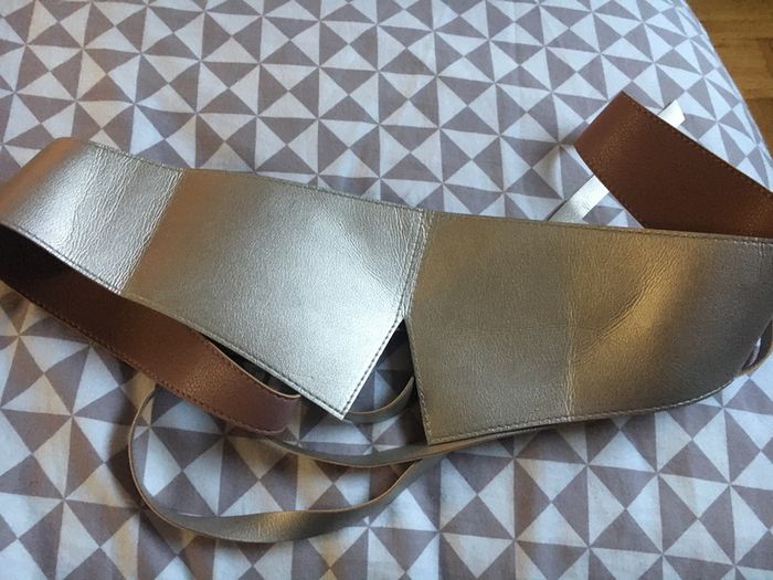 ceinture à nouer réversible : un côté vieux rose, un côté argent simili cuir