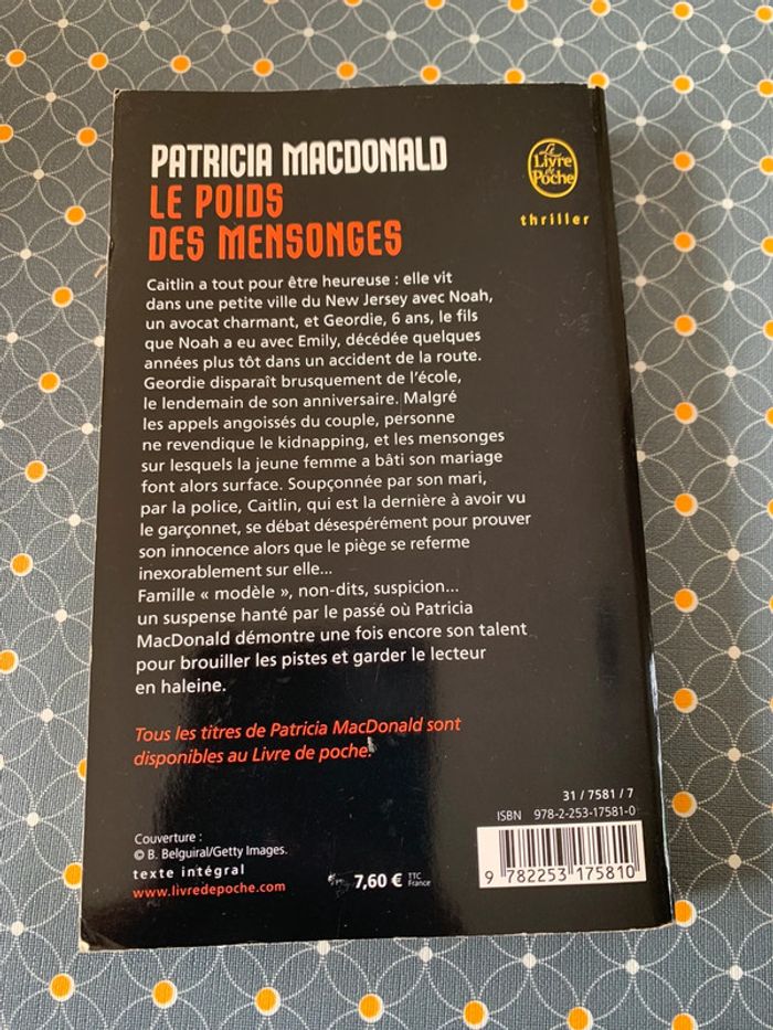 Livre le poids des mensonges de Patricia macdonald