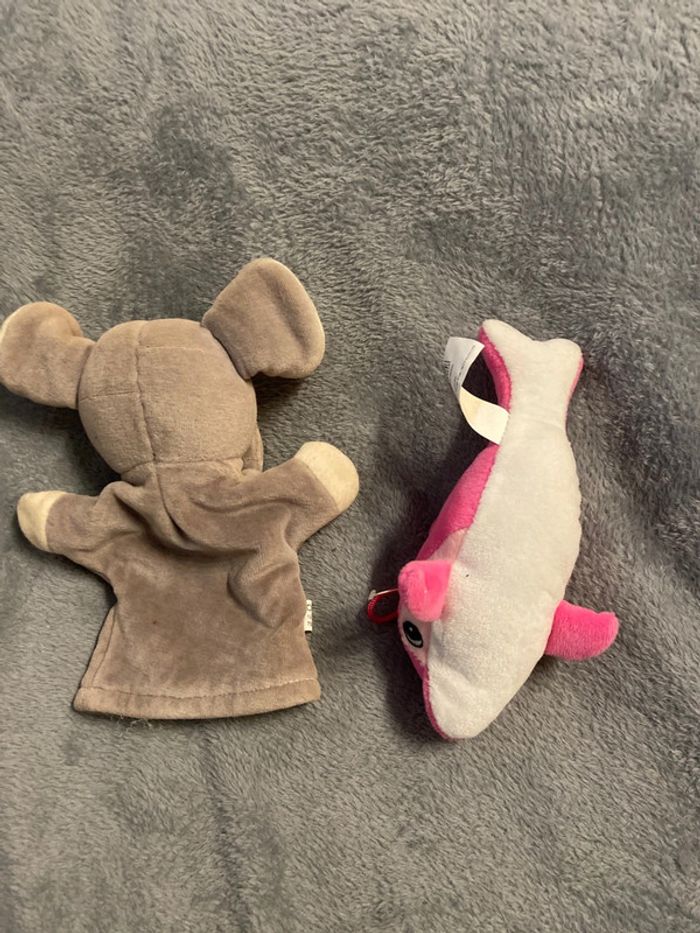 Lot de deux peluche Une marionnette et dauphin