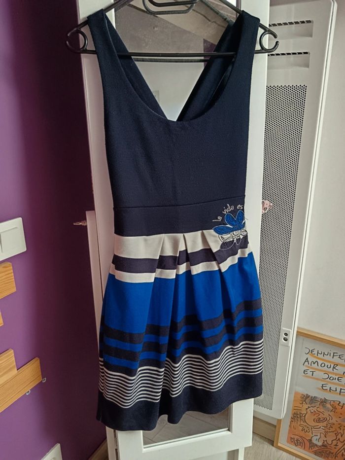 Robe desigual marinière bleue marine dos croisé taille M - photo numéro 1