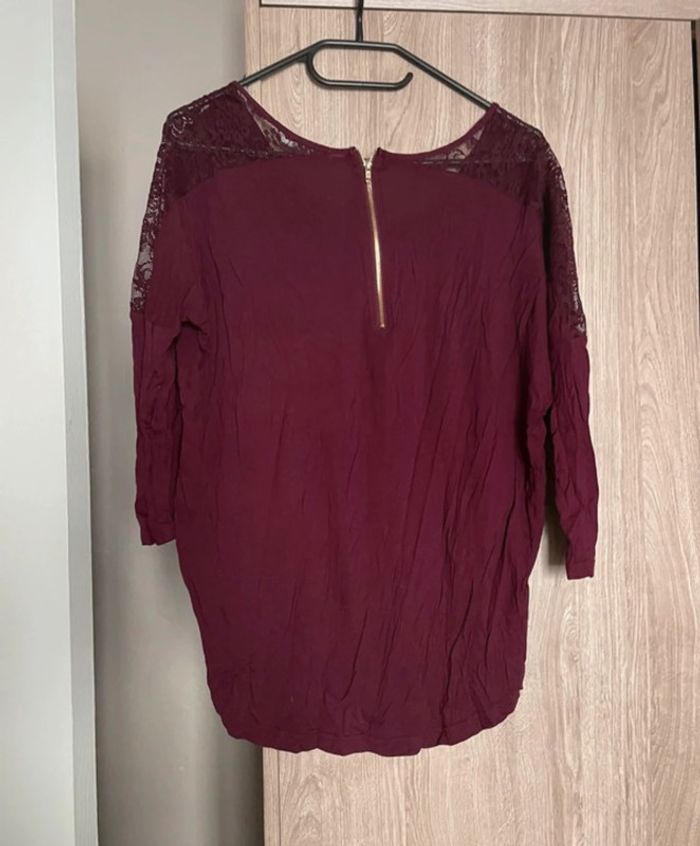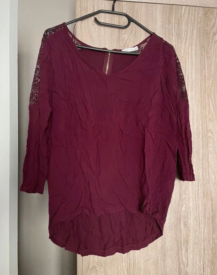 Lot de 2 T-shirts bordeaux / violet et un rose Fermeture dans le dos Dentelle sur les manches et dans le dos pour le violet Manches mi-longues Taille M Gemo Très bon état Envoi rapide et soigné, #julianna2305taille38