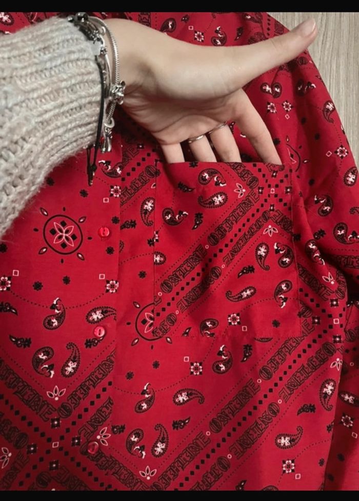 chemise rouge motifs noirs poche sur le côté gauche taille 38 jennyfer neuve jamais portée, juste enlevé les étiquettes envoi rapide et soigné, #julianna2305taille38 #chemise #chemise38 #chemisefemme #femme #femme38 #chemiserfemme38 #jennyfer #jennyfer 38