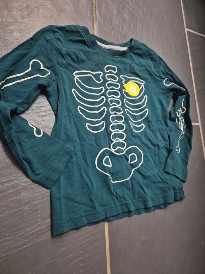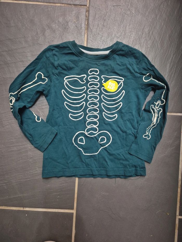 Vends haut manches longues vert foncé motif squelette 5 ans lupilu #juhjuh5ans