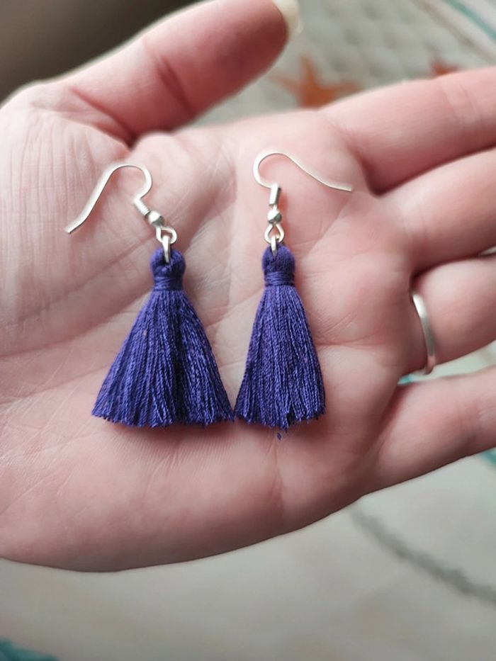 Boucles d'oreilles pompon violet