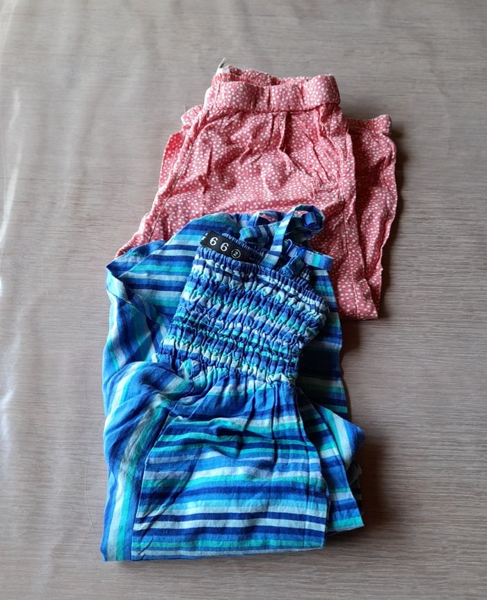 Lot été fille. Taille 86 1 salopette et 1 pantalon léger grain de blé Bon état. Maison non fumeur