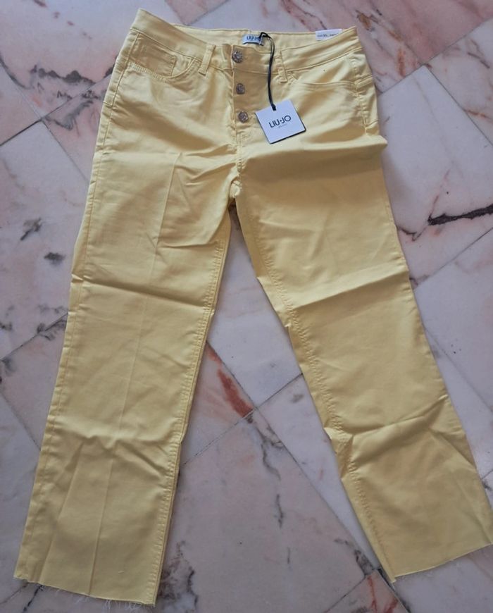 Liu Jo jean été jaune poussin button croped T.40 neuf - photo numéro 1
