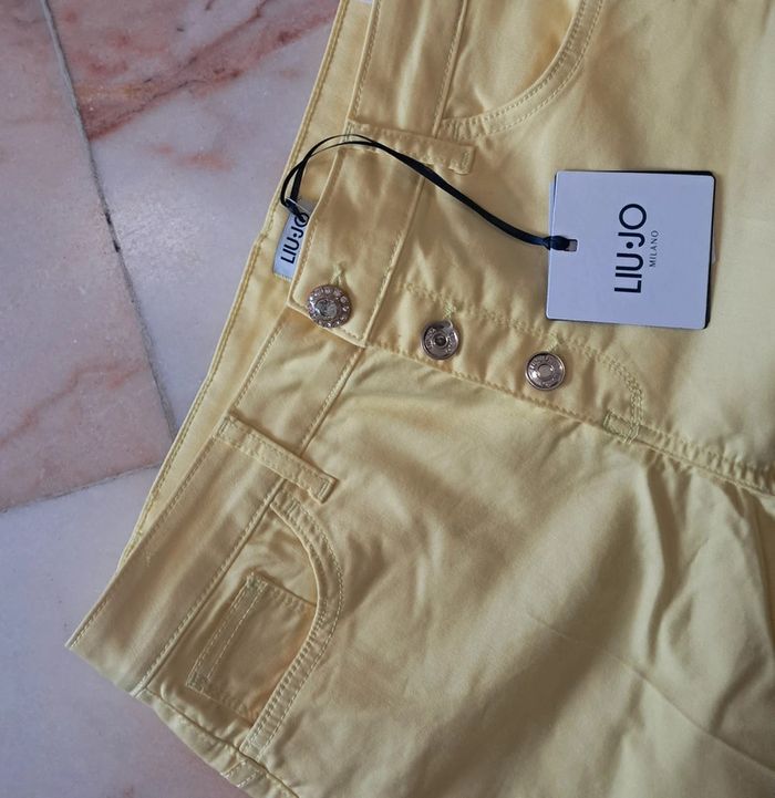 Liu Jo jean été jaune poussin button croped T.40 neuf - photo numéro 3