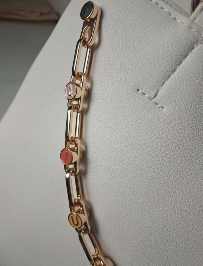 Liu Jo superbe sac à main grand format blanc avec jolie chaînes maillons colorés Beaucoup de rangements Neuf avec étiquette ( val. 179 euros ) Avec pochette de protection Dimensions en photos Possède le même en noir dans une autre annonce Dans la même categorie cliquez ici: #collectionsephemeresmaroquinerie D'autres articles en ligne, possibilité d'achat en lot Pas de réservation
