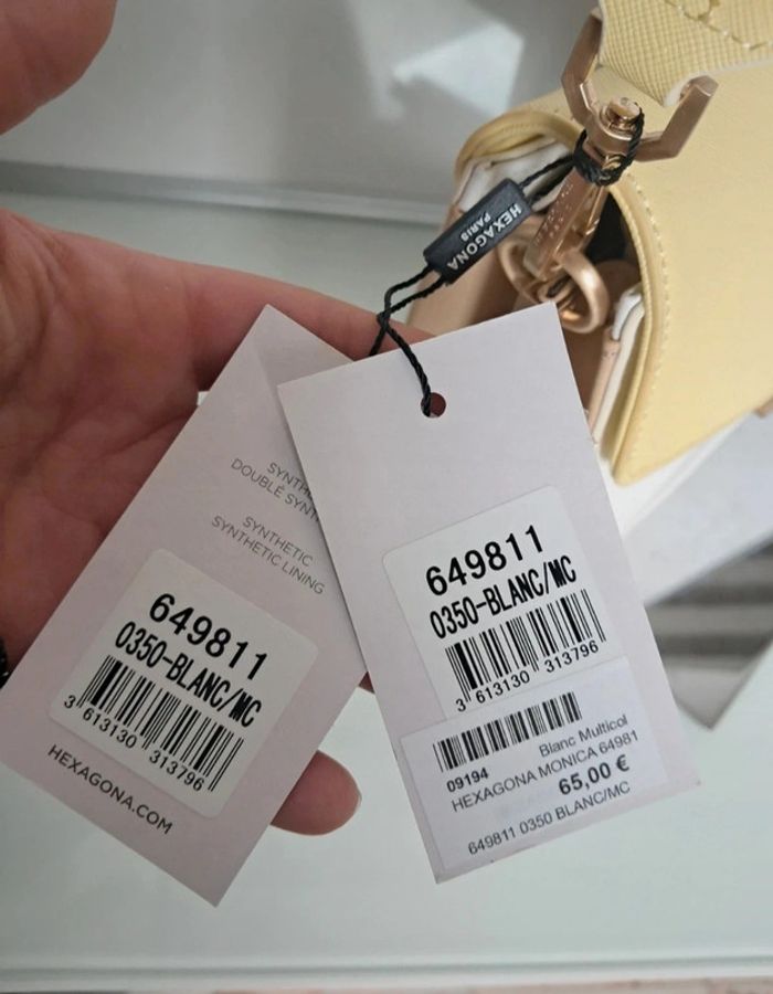Hexagona très joli sac à main à bandoulière Neuf avec étiquette ( val. 65 euros ) Possède plusieurs portefeuille assorti Dans 2 autres annonces Dimensions en photos Dans la même categorie cliquez ici: #collectionsephemeresmaroquinerie D'autres articles en ligne, possibilité d'achat en lot Pas de réservation