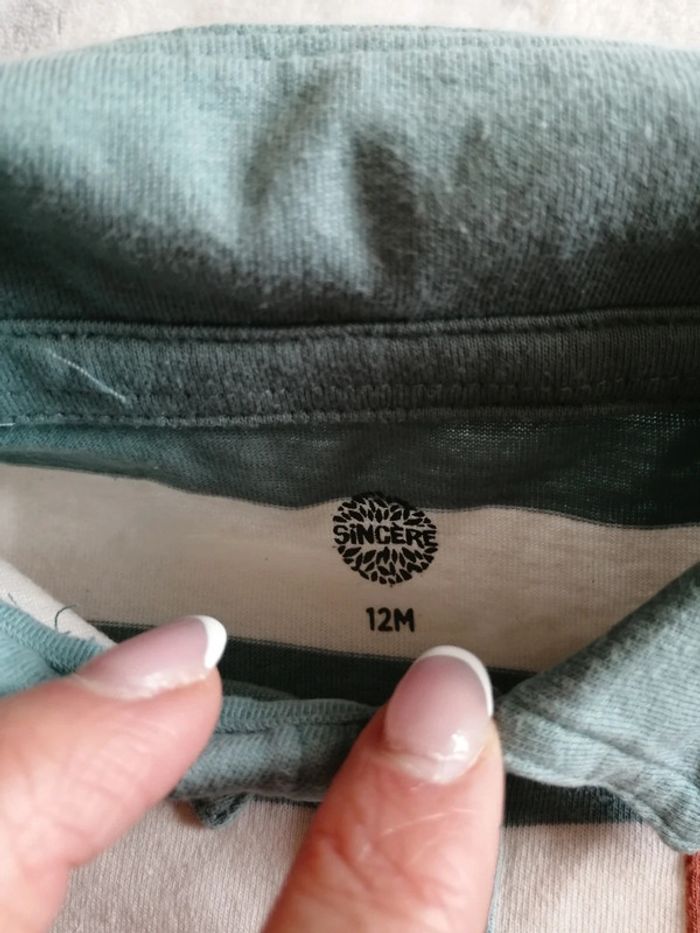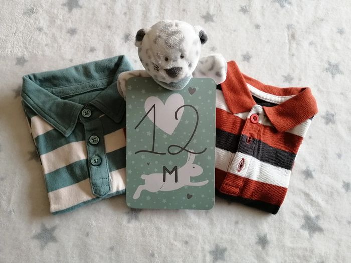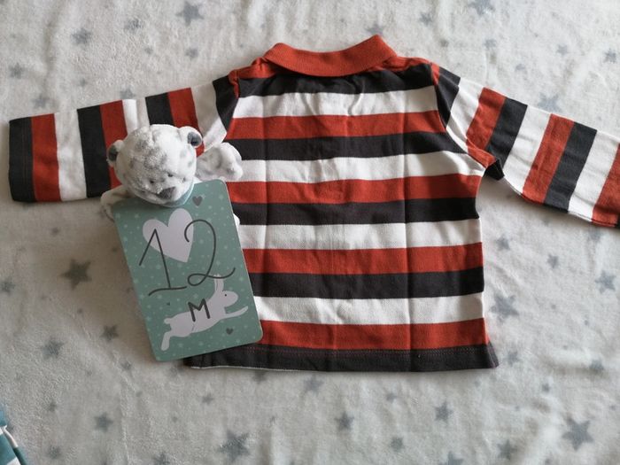 Vends lots d 2 t-shirt manches longues dit aussi sous pulls esprit polos Excellent état Pas de tâches ni de trous Marque : Sincère et Mot d'enfant Couleurs : orange et marron / Bleu et crème Motifs : rayures La carte et la peluche ne sont à vendre