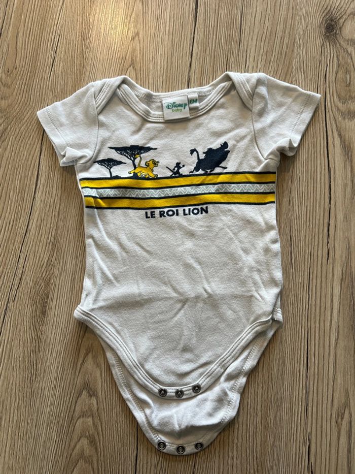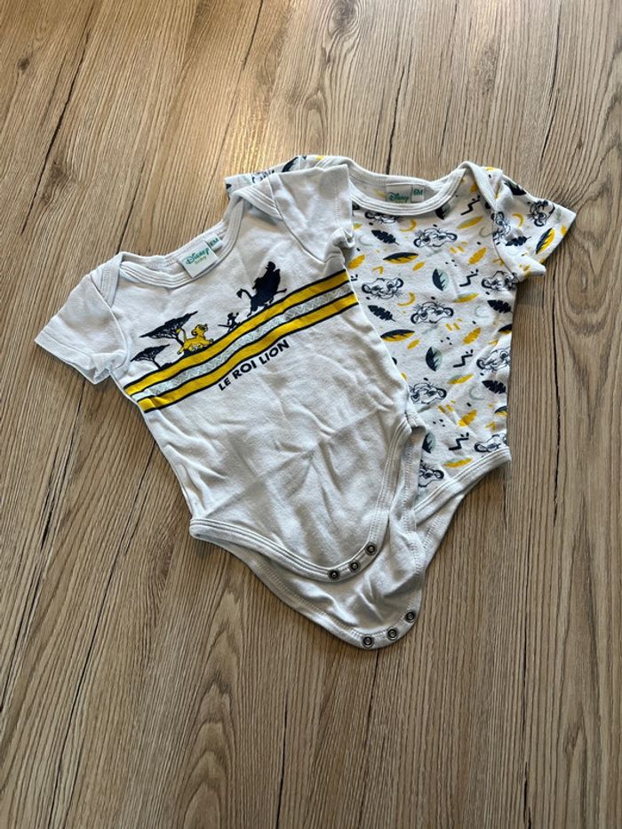 #lot #2pieces #bodie #manchecourte #leroilion #simba #blanc #jaune #bleu #marine #6mois #tresbonetat #garçon #disneybaby #disney