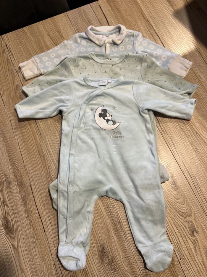 #lot #3pieces #pyjamas #3mois #grenouillere #tresbonetat #mickey #dinosaure #ourson #vert #bleu #boutonpression #kiabi #tresbonetat #garçon