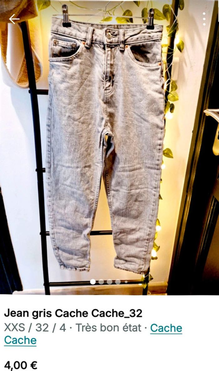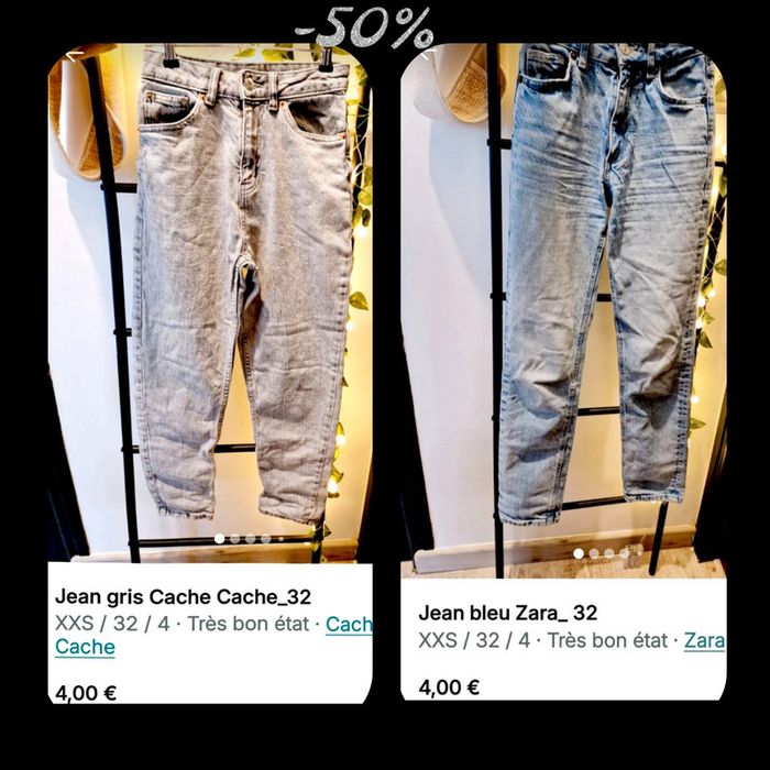 Si vous souhaitez créer un lot, les réductions sont activées 😊 : #arenascFemmeTailleXS En très bon état, ni trou, ni tâche. Ensemble comprenant: 🌼1 jean gris de chez Cache-Cache. 🌼1 jean bleu de chez Zara.