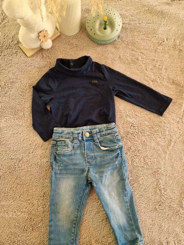 Si vous souhaitez créer un lot, les réductions sont activées 😊 : #arenascGarçonTaille9Mois En très bon état, ni trou, ni tâche. Ensemble comprenant: 🐿1 jean clair. Marque: Zara. 🐿1 tee-shirt bleu marine avec col roulé. Motif: voiture. Marque: Orchestra.