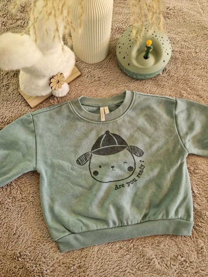 Si vous souhaitez créer un lot, les réductions sont activées 😊 : #arenascGarçonTaille9Mois Tissus en bon état: le pantalon bouloche, ni trou, ni tâche. Ensemble, de chez Orchestra, comprenant: 🐿1 pantalon gris foncé 🐿1 sweat vert, motif chien, "are you ready?"