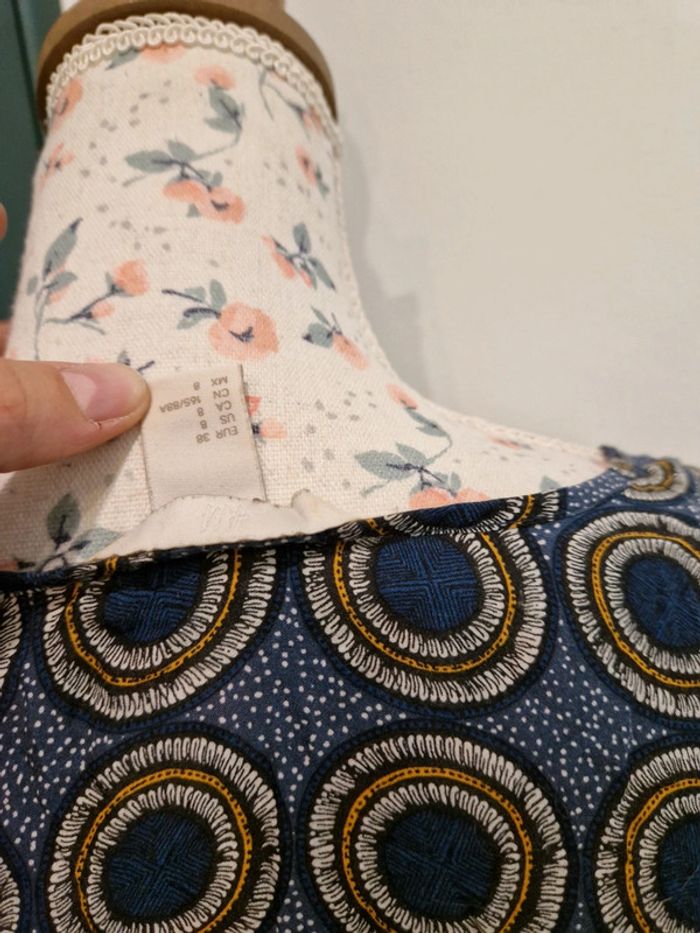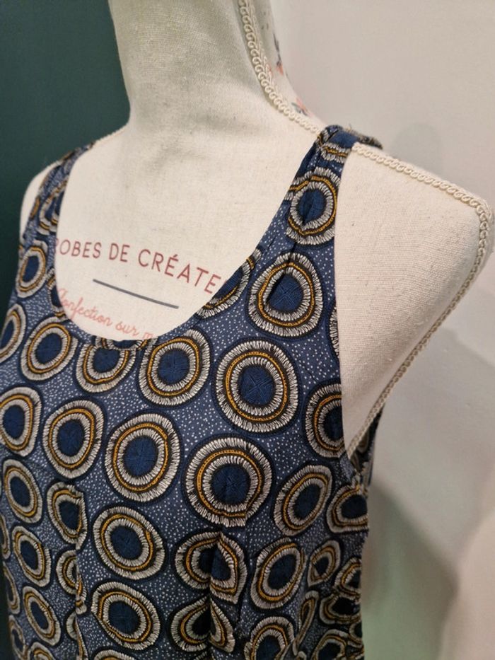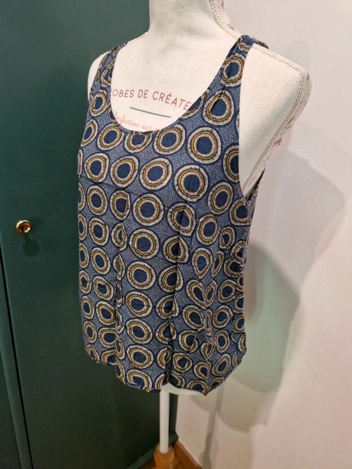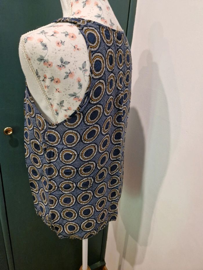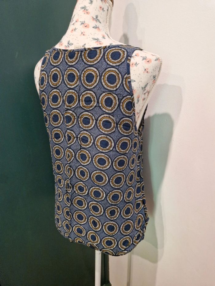 Si vous souhaitez créer un lot, les réductions sont activées 😊 : #arenascFemmeTailleM En très bon état, ni trou, ni tâche. Blouse bleue sans manches. Formes géométriques. Marque: Tex. Taille: 38.