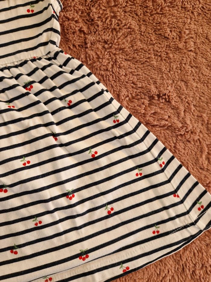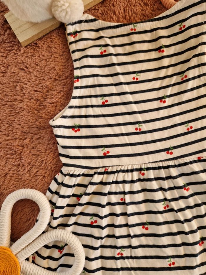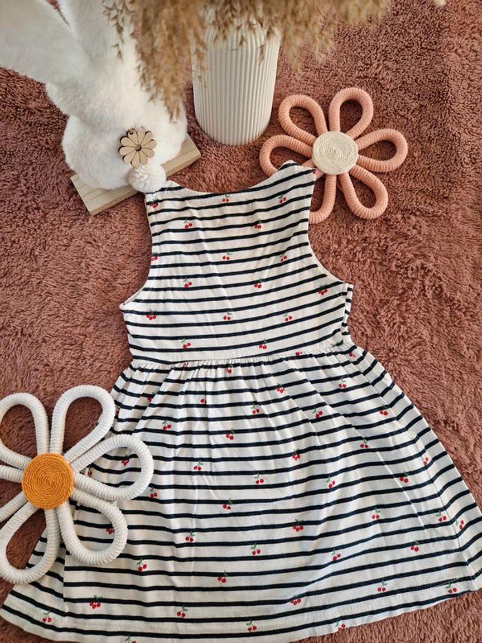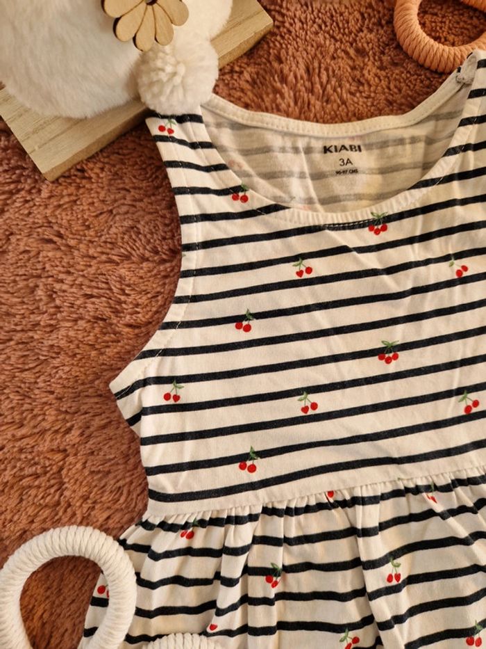 Si vous souhaitez créer un lot, les réductions sont activées 😊 : #arenascFilleTaille3ans Tissu en excellent état, pas de trou, petite tâche très peu visible à l'avant. Robe marinière. Cerises rouges. Marque: Kiabi.
