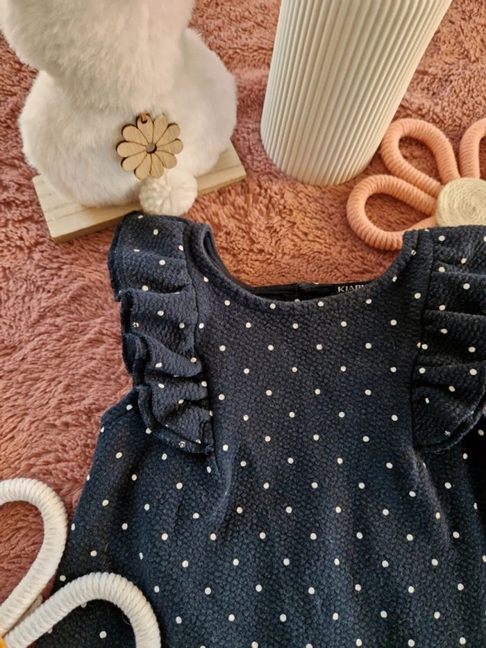 Si vous souhaitez créer un lot, les réductions sont activées 😊 : #arenascFilleTaille3ans En excellent état, ni trou, ni tâche. Robe bleue marine avec pois blancs. Double volants aux épaules. Marque: Kiabi.