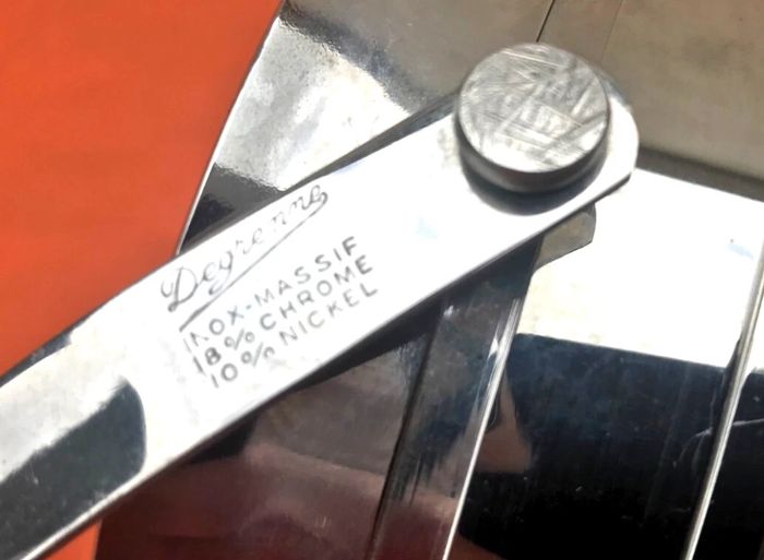 (article vendu en l' état, micro-rayures état d' usage voir toutes les photos) Années 1960 Guy Degrenne Seau à glace à anse Inox 18/10 Hauteur : 125mm Diamètre : 130mm Poids : 410grs