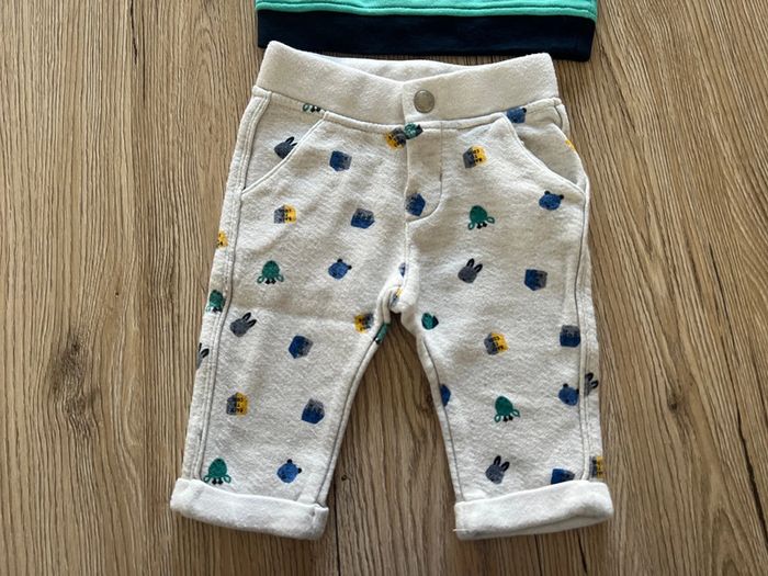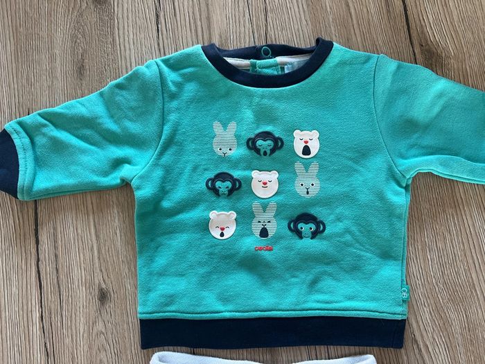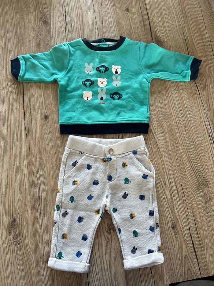 #ensemble #pull #pantalon #3mois #garçon #tresbonetat #obaibi #bleu #gris #confort #personnages