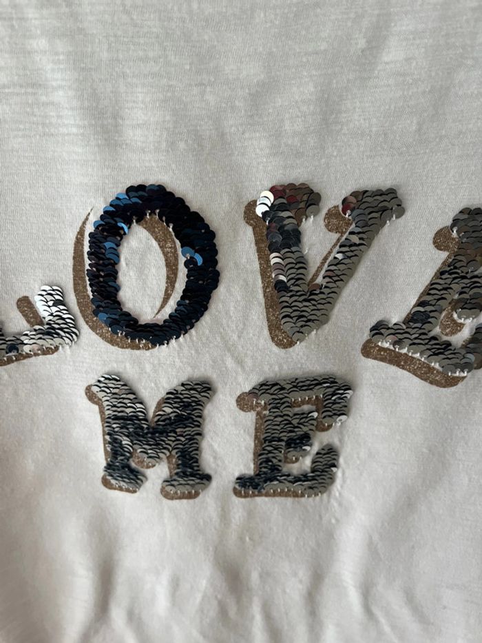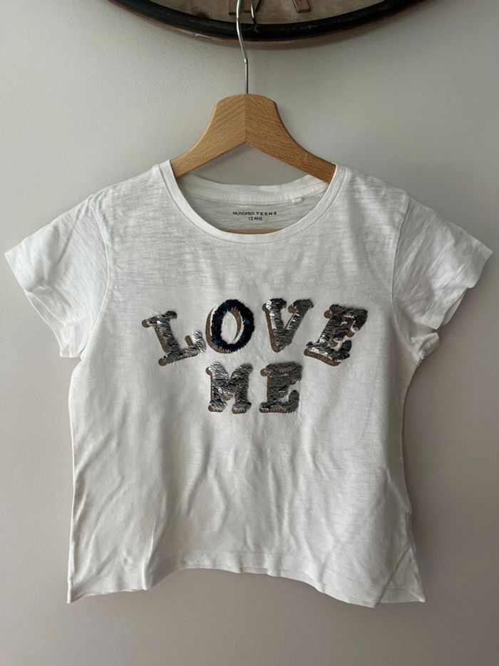 Tee-shirt Monoprix taille 12 ans couleur blanc Avec sequins devant Manches courtes 100% coton