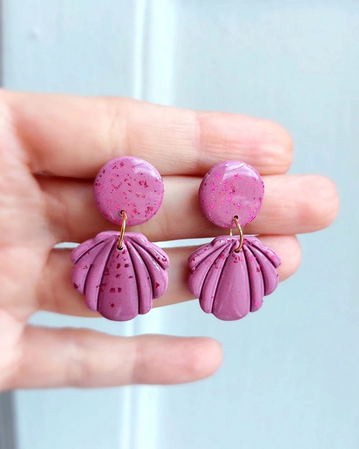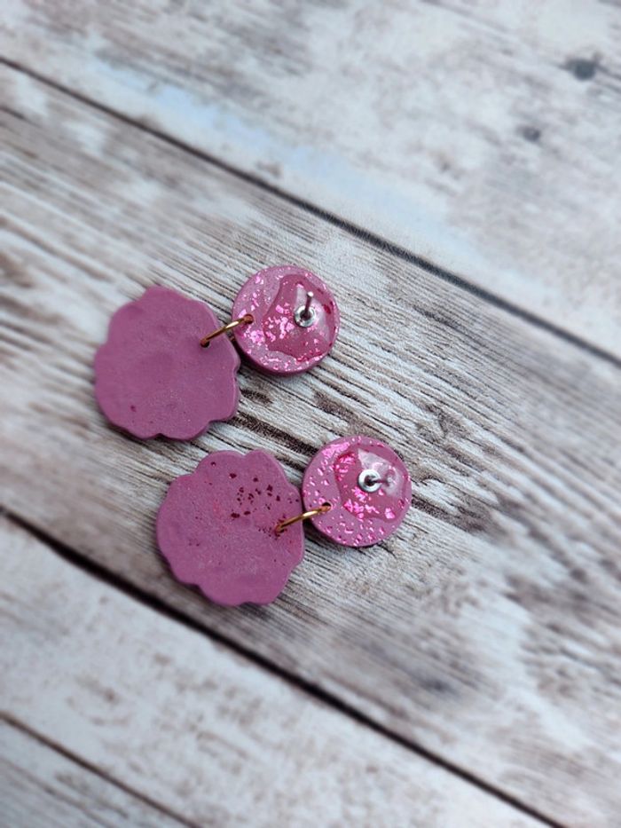 Boucles d'oreilles en argile polymère vernie et acier inoxydable. Longueur 3.5 cm Légères