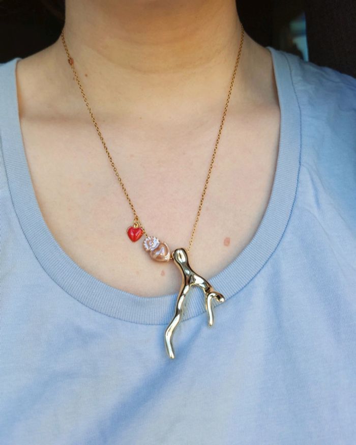 ✨️ Pour voir tous les colliers dispo dans ma boutique #lilitecolliers ✨️ Collier en acier inoxydable doré (longueur chaine 46 cm), perle coeur ex-voto en céramique et pendentif branché en plastique doré.