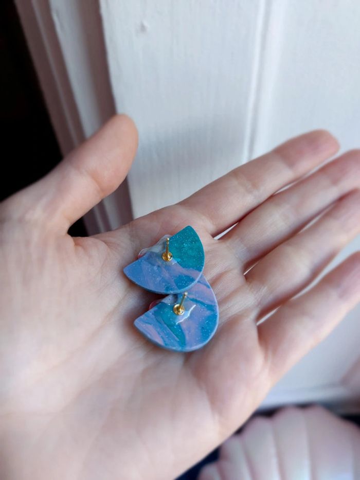 Boucles d'oreilles en pâte polymère et tiges en acier inoxydable doré. 2,5 cm, 2 cm
