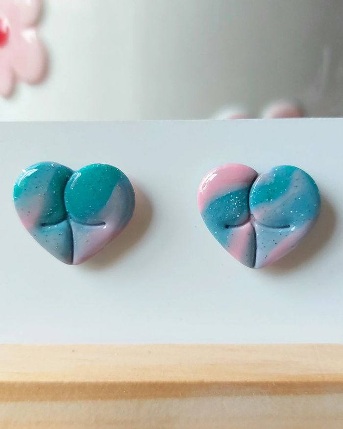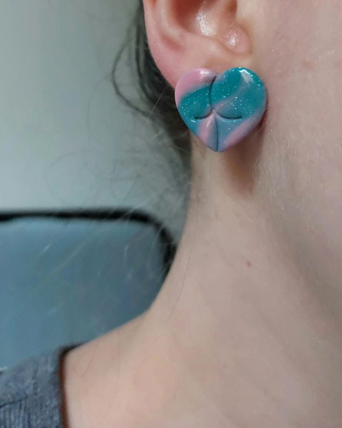 Boucles d'oreilles en argile polymère avec tiges en acier inoxydable. 2 cm x 2.3 cm