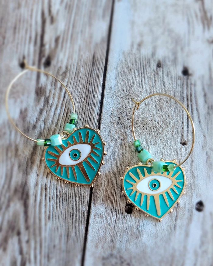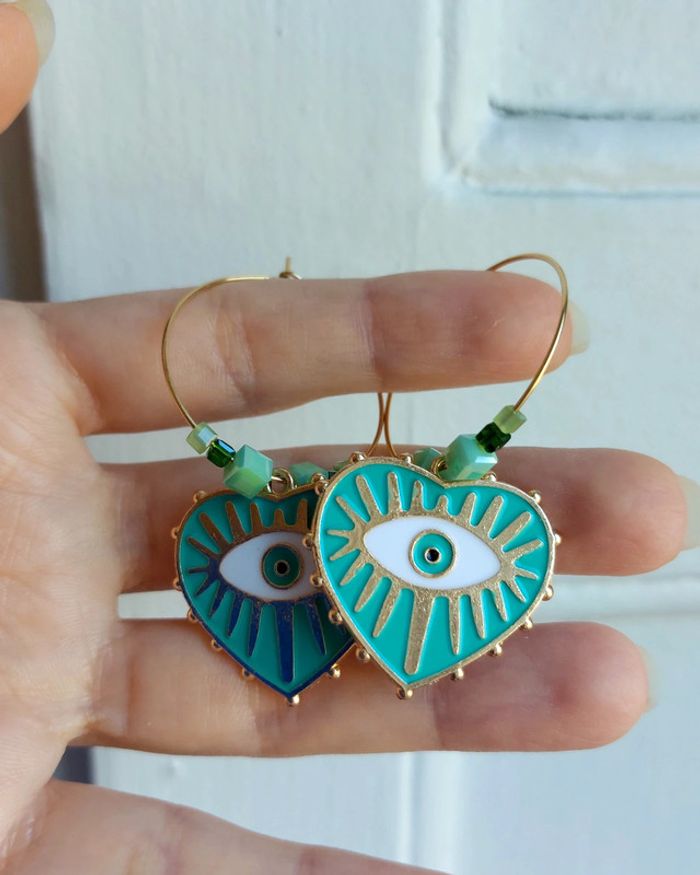 ✨️ Pour voir toutes les boucles d'oreilles dispo dans ma boutique #liliteboucles ✨️ Boucles d'oreilles en acier inoxydable, perles, et pendentifs coeur en métal. Longueur totale 5.7 cm