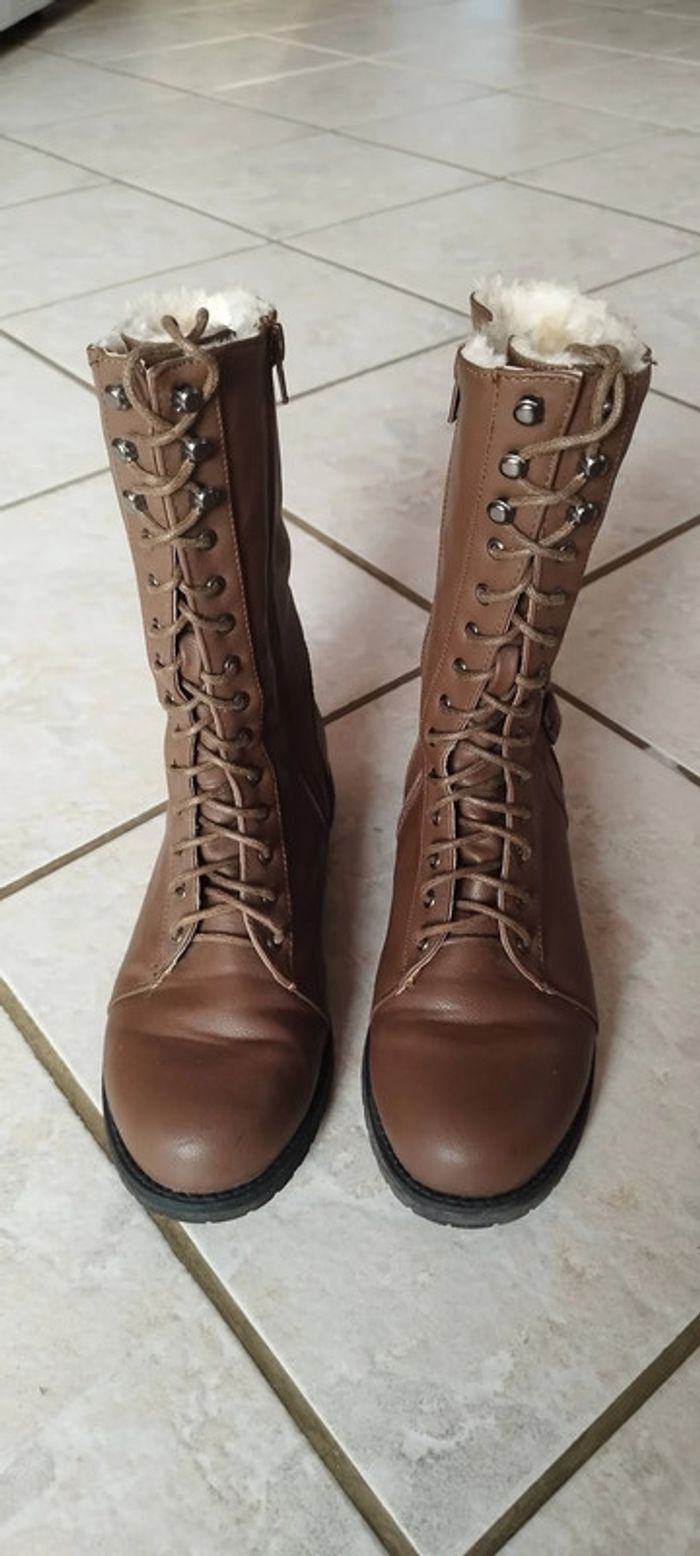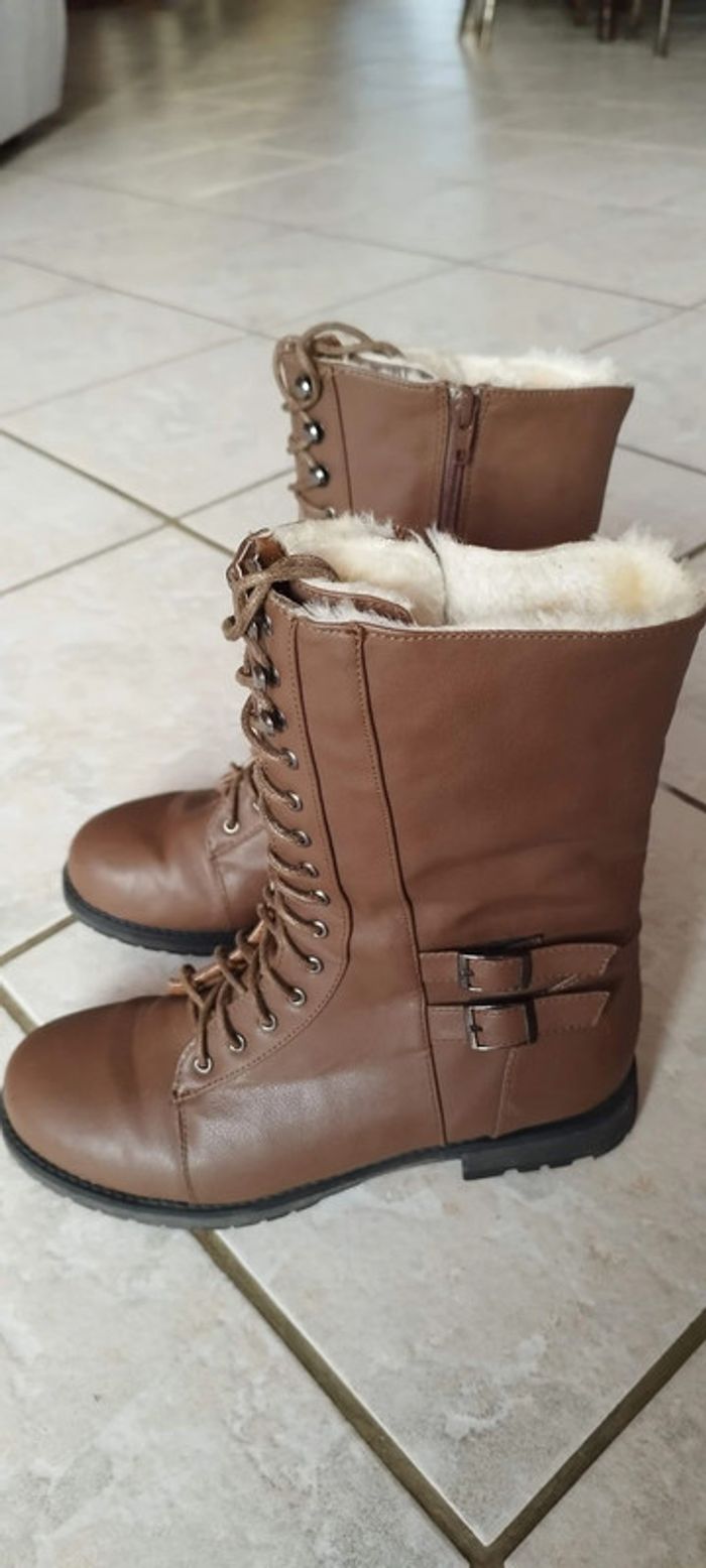 Bottines en fourrure marron très peu portées. Pointure 39 - photo numéro 2