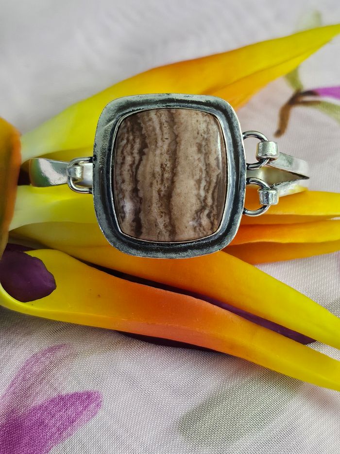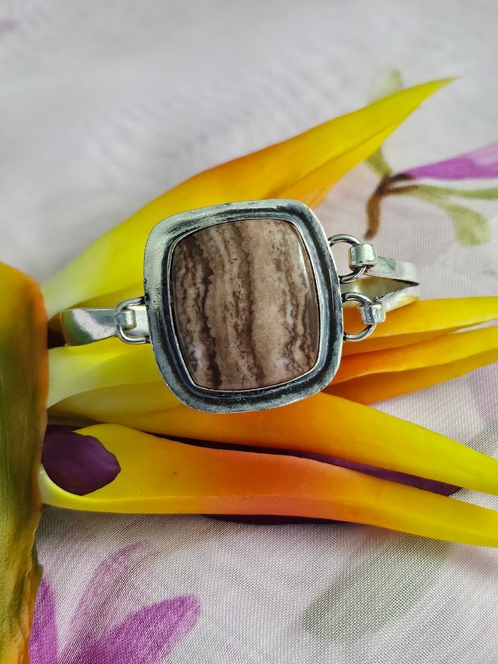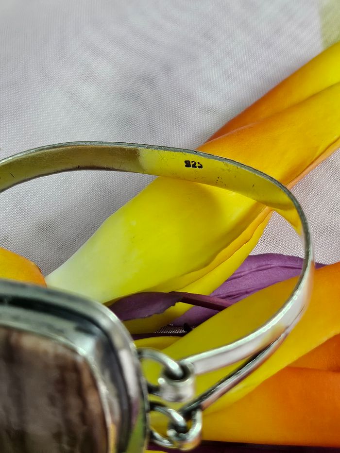 Bracelet en argent Sterling 925 avec pierre jaspe coconut Neuf sans étiquette, jamais porté Piece unique en pierre naturelle SERTIE Poinçonné 925 Ajustable