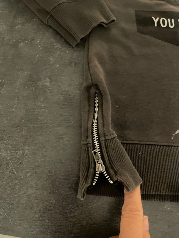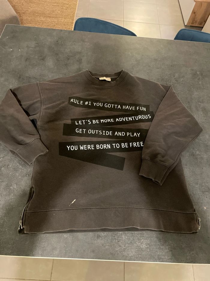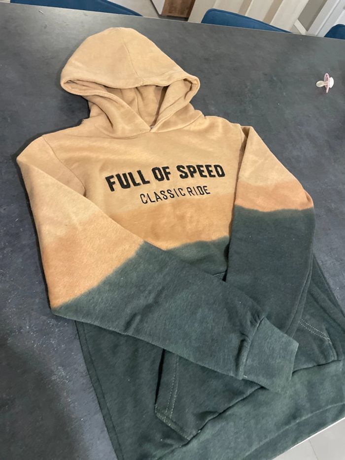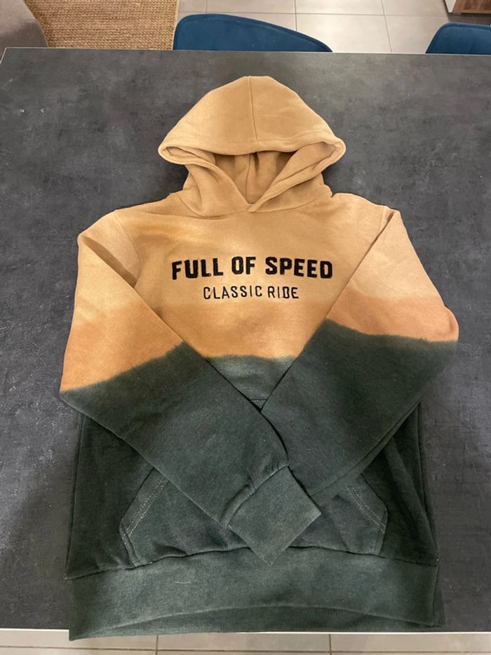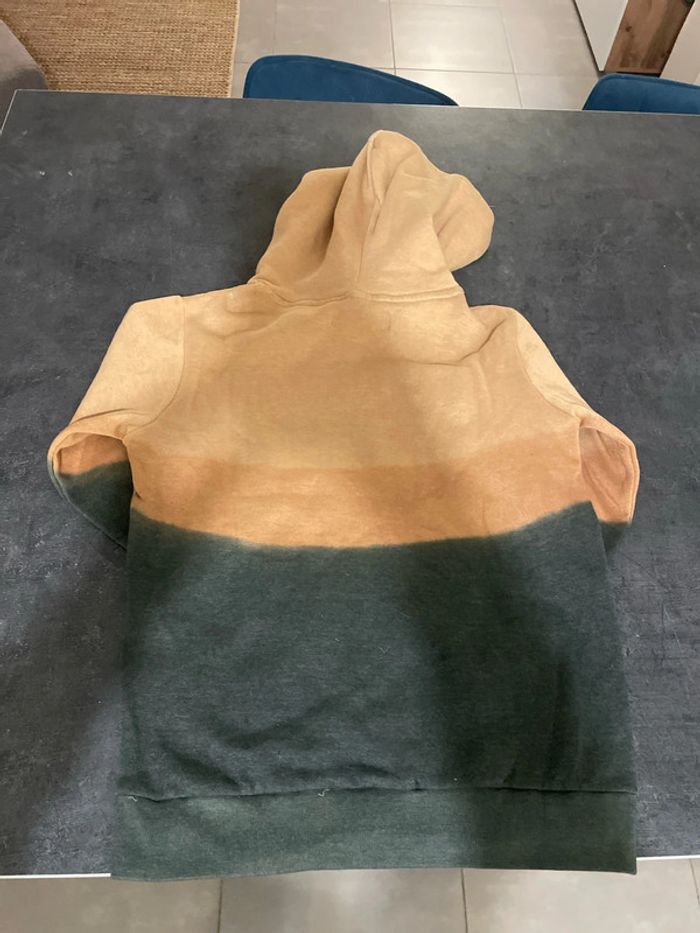 Pull à capuche, couleur dégradée du kaki au beige comme neuf, offert avec un sweat Zara , taille 12 ans